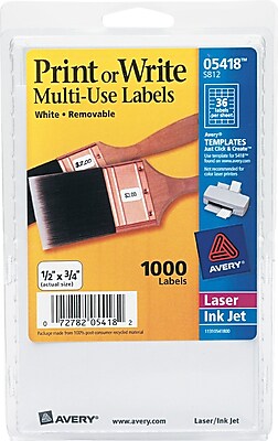 Avery 0.5" x 0.75" Inkjet/Laser Removable Print or Write Labels, White, 28/Pack (05418) | Staples®
