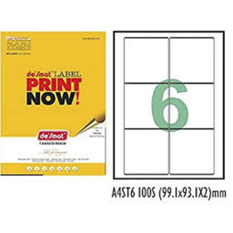 A4 Labels A4ST6 [00120] : Desmat, A Rational Business Corporation Pvt ... A4ST6 are Paper labels with standard permanent adhesive. Each Sheet of A4 size has White label (s) with each label of size 99.1 x 93.1 . Designed for use with laser printers and inkjet printers or to be used as handwritten labels. Compatible with Avery label template number L7564 *